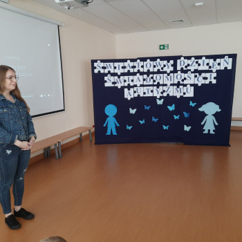 2 kwietnia obchodzimy Światowy Dzień Świadomości Autyzmu, który został ustanowiony w roku 2007 przez Zgromadzenie Ogólne ONZ w celu podnoszenia świadomości społecznej i propagowania wiedzy na temat tego zaburzenia. Nasze pięciolatki i sześciolatki 5 kwietnia przyłączyły się do akcji wyrażając solidarność z osobami autystycznymi. Na znak jedności, akceptacji i zrozumienia, przedszkolaki założyły ubrania w kolorze niebieskim. Obejrzały filmiki edukacyjne, dzięki którym dowiedziały się czym charakteryzuje się osoba mająca autyzm. Następnie wzięły udział w zajęciach prowadzonych przez pedagoga specjalnego - Panią Ewelinę Wierzbicką oraz psychologa - Panią Natalię Świrszcz, podczas których próbowały wczuć się w rolę osoby mającej zaburzenia ze spektrum autyzmu oraz poznawały świat wszystkimi zmysłami.