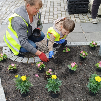 Misję zasadzenia drzew i obsadzenia klombu na Placu Tadeusza Kościuszki dzieci wykonały z nieocenioną pomocą Pana Pawła Króla Burmistrza Miasta i Gminy Małogoszcz oraz we współpracy z Panem Andrzejem Skrobotem Dyrektorem Zakładu Gospodarki Komunalnej i Mieszkaniowej.
