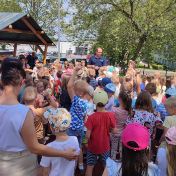 18 czerwca gościliśmy w naszym przedszkolu Pana policjanta z Komisariatu Policji w Małogoszczu. Przedszkolaki uczestniczyły w prelekcji na temat bezpiecznych wakacji. Jej celem było zwiększenie świadomości młodych ludzi o bezpieczeństwie i możliwych zagrożeniach, które mogą pojawić się podczas spędzania wolnego czasu. Dzieci miały również okazję zapoznać się z podstawowym wyposażeniem policjanta oraz wozem interwencyjnym. Dziękujemy jeszcze raz Panu policjantowi za przybycie i poświęcony dla nas czas.