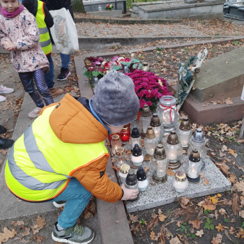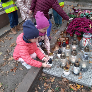 Miesiąc listopad to dla każdego czas zadumy i pełen wspomnień. Wspominamy tych, których już z nami nie ma. Pamiętamy też o tych, którzy zapłacili najwyższą cenę za wolność, oddając życie w obronie Ojczyzny. Grupa „KOTKI” 30 października wybrała się na cmentarz, celem uczczenia pamięci zmarłych walczących za naszą Ojczyznę. Dzieci wspólnie z paniami zapaliły znicze na grobach zasłużonych w walce o wolność. Z dużym zainteresowaniem obserwowały także jak wiele serca wkładają ludzie w troskę o groby swoich najbliższych. To była bardzo ważna lekcja wychowania rodzinnego i obywatelskiego dla przedszkolaków.