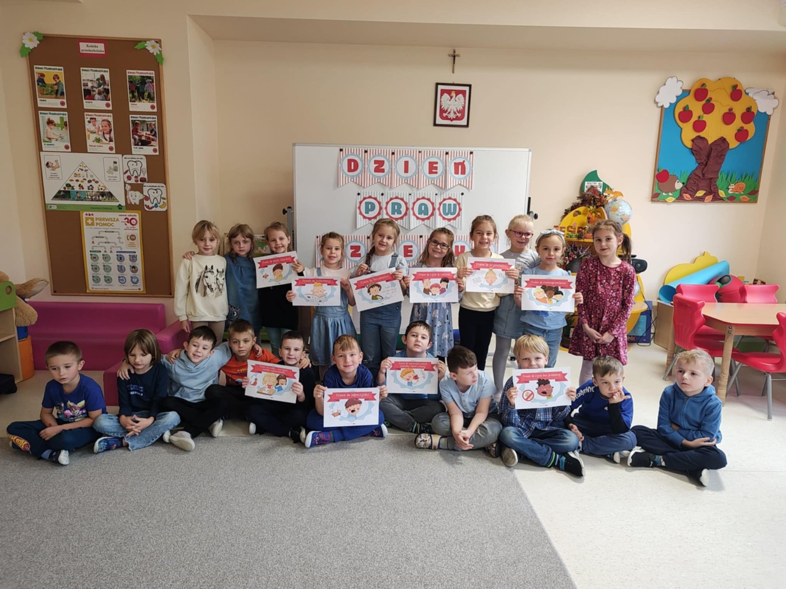 20 listopada w naszym przedszkolu świętowaliśmy Międzynarodowy Dzień Praw Dziecka. Jest to szczególny dzień, którego obchody na stałe zagościły w naszym kalendarzu. Główna uwaga skierowana była na dzieci i ich prawa, które poznały podczas wspólnej zabawy. Jest to również okazja do uświadomienia wszystkim, iż prawa dziecka są bardzo ważne, a my dorości powinniśmy ich przestrzegać i pozwolić dzieciom w pełni z nich móc korzystać. Dzień ten przepełniony był uśmiechem, radością oraz kolorem niebieskim królującym na salach przedszkolnych.