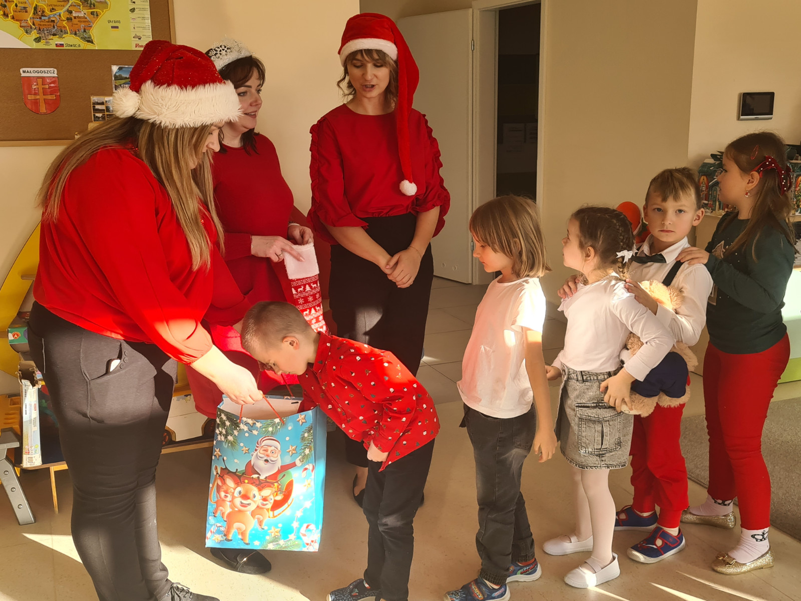 W dniu 06.12.2024 zostały przeprowadzone w każdej grupie MIKOŁAJKOWE ZADANIA. W każdej grupie pojawiło się trzech pomocników Świętego Mikołaja (Pani Psycholog, Pani Pedagog oraz Pani Logopeda). Każda grupa miała wylosować zadanie, które znajdowało się w świątecznej skarpecie. Zadania były różne np: