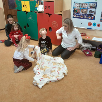 16 grudnia dzieci z grupy „Liski” zaprosiły do przedszkola swoich rodziców. Z okazji zbliżających się Świąt Bożego Narodzenia dzieci wspólnie z rodzicami aktywnie brały udział w zabawach: muzyczno - ruchowych, śpiewały świąteczne piosenki, ubierały choinkę w bombki, na których były zadania do wykonania, rozwiązywały zagadki, dzieliły słowa kojarzące się ze świętami na sylaby. Największą frajdę przedszkolakom sprawiło wykonanie wspólnie z rodzicami świątecznego skrzata, którego zabrały do domu. Zajęcia przebiegały w radosnej atmosferze, sprzyjającej integracji i twórczej zabawie. Spotkanie zakończyło się wspólnym poczęstunkiem, wprowadzając wszystkich w świąteczny nastrój.