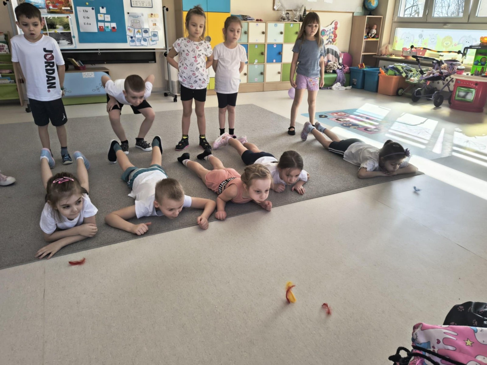 W codziennej terapii logopedycznej prowadzonej w przedszkolu zaplanowane aktywności miały na celu doskonalenie sprawności aparatu mowy, ćwiczenia oddechowe, rozwijanie percepcji i uwagi słuchowej. Przedszkolaki dmuchały na piórka, grały w „Wyścigi balonów”, uczestniczyły w zabawie ruchowej. Odbyły się także zajęcia otwarte w grupie „Biedronki” w ramach programu profilaktyki logopedycznej.