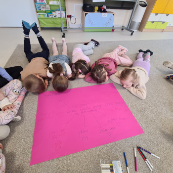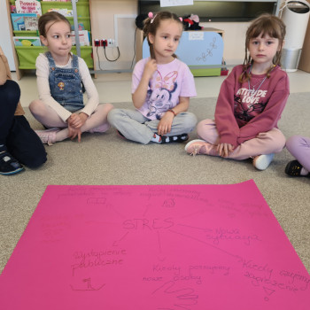 Kwiecień to miesiąc radzenia sobie ze stresem dlatego nasze przedszkolaki brały udział w ważnych zajęciach, które mają na celu rozwijanie i kształtowanie sfery emocjonalnej. Stres jest nieodłącznym czynnikiem w naszym życiu dlatego istotne jest, aby dzieci poznawały techniki radzenia sobie z nim. Przedszkolaki rozpoznawały i nazywały sytuacje społeczne oraz dopasowywały je do odpowiednich stanów emocjonalnych. Opisywały również sytuacje, które wywołują u nich w ciele sygnały świadczące o tym, że doświadczają uczucia stresu. Wykonaliśmy mapy myśli, które dotyczyły odczuć w ciele jakie powoduje stres, a także sytuacji które stresują.
