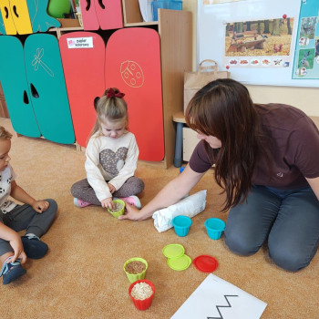 W grupie Krasnoludki zrealizowano już moduł I pt. „Jesienne zabawy sensoryczne”. Dzieci z ogromną radością i zaangażowaniem brały udział w proponowanych aktywnościach, które okazały się dla nich niezwykle ciekawe i inspirujące.