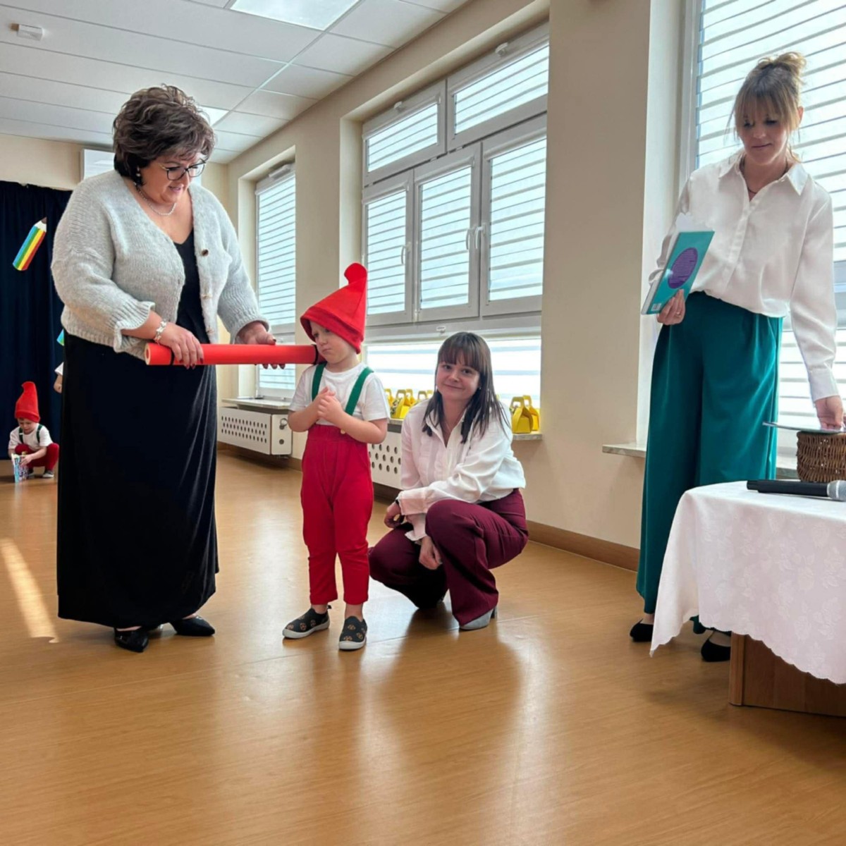 Dziś nasze małe „Krasnoludki” zrobiły pierwszy, bardzo ważny krok w swojej przedszkolnej przygodzie. To był dzień pełen emocji: radości, wzruszeń i dumy. Dzieci z zaangażowaniem zaprezentowały przygotowane piosenki i wierszyki, a następnie każde z nich zostało uroczyście pasowane na przedszkolaka.Wierzymy, że przed naszymi Krasnoludkami otwiera się etap pełen życzliwych spotkań, nowych umiejętności i przyjaźni, które będą kształtować ich dalszą drogę.