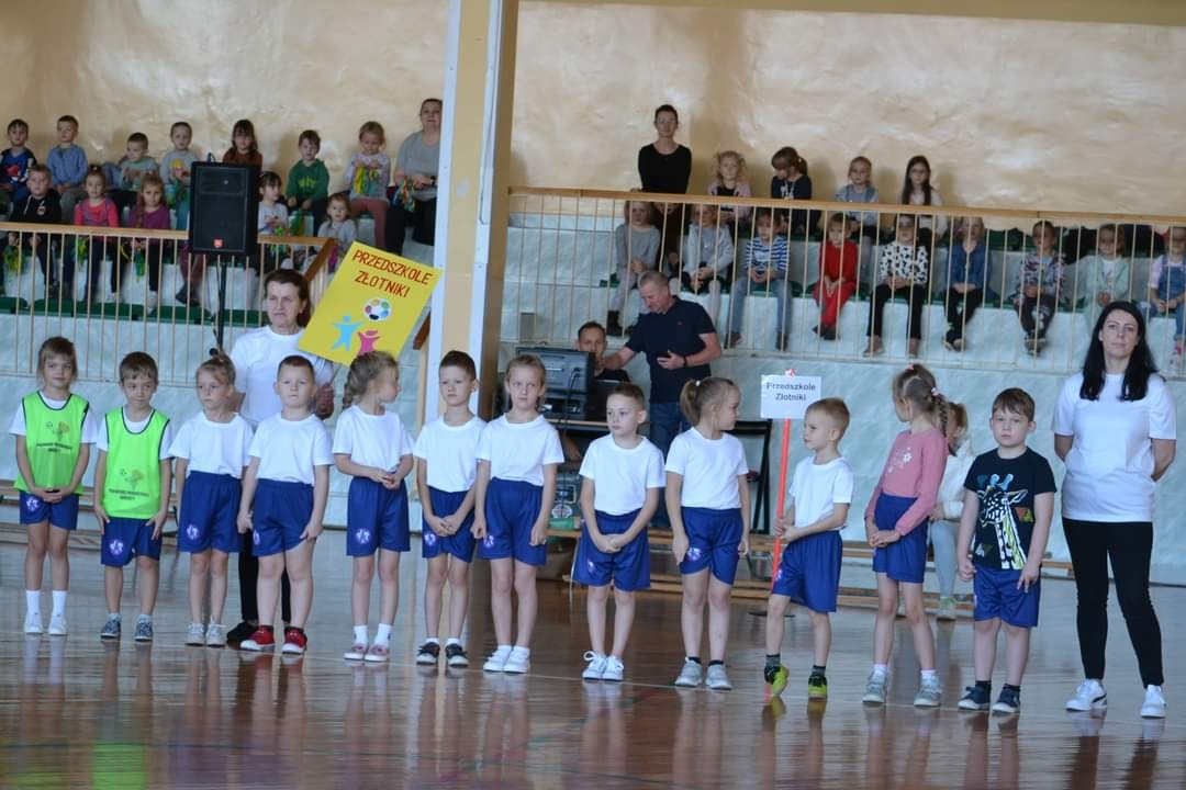Udział w zmaganiach sportowych wzięły: Przedszkole Publiczne w Małogoszczu, Przedszkole Publiczne w Złotnikach oraz Przedszkole Publiczne w Kozłowie. Gminne rozgrywki otworzyła Pani Dyrektor Ewa Wypych – która życzyła przedszkolakom przede wszystkim wspaniałej zabawy! Mali sportowcy podczas olimpiady konkurowali w czterech dyscyplinach: bieg sztafetowy, rzut do celu, skok w dal oraz bieg z przeszkodami. Sportowcy z naszego przedszkola zajęli ostatecznie I miejsce i 17 listopada będą reprezentować Gminę Małogoszcz na etapie powiatowym. Pan Burmistrz Mariusz Piotrowski z Panią Wizytator Izabelą Skowron Jędralską oraz Panią Dyrektor Ewą Wypych i zaproszonymi gośćmi gratulowali wszystkim przedszkolakom oraz wręczyli medale i puchary.