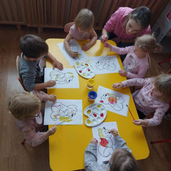 25 listopada po raz pierwszy odwiedziła nas grupa dzieci 3 letnich ze Żłobka w Małogoszczu. Grupa Misie miała okazję uczestniczyć wraz z grupą Muchomorki w zajęciach z Okazji Dnia Pluszowego Misia. Dzieci wspaniale się zintegrowały. Wspólnie ułożyły historyjkę obrazkową, malowały farbami kontur Kubusia Puchatka, a w nagrodę skosztowały ciasteczka w kształcie misia. Dziękujemy Paniom i dzieciom ze żłobka za przyjęcie zaproszenia oraz wspólnie spędzony czas.
