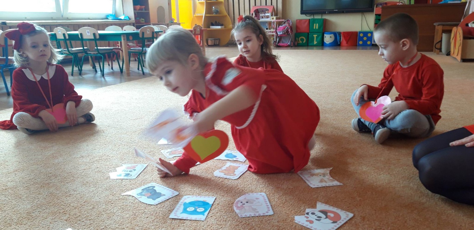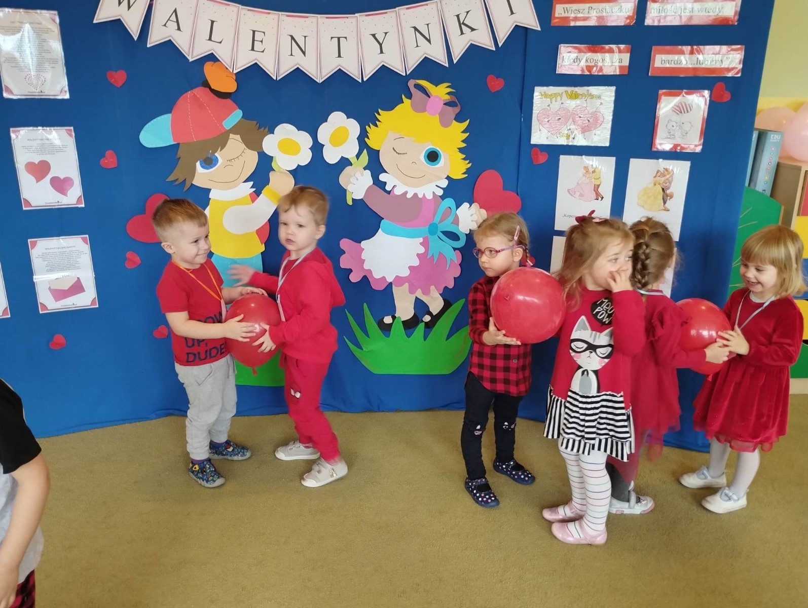 Walentynki to święto, które na stałe wpisało się w nasz kalendarz. W przedszkolu co roku celebrujemy walentynkowe zwyczaje. W tym dniu dominował kolor czerwony. Dzieci poznały historię i tradycje walentynkowe, szukały drugiej połówki serca, dowiedziały się jak ważne jest okazywanie uczuć i sympatii. Przedszkolaki wykonywały interesujące prace plastyczne, których motywem przewodnim były serduszka. Nie zabrakło również wspólnych tańców przy dźwiękach najpiękniejszych piosenek.